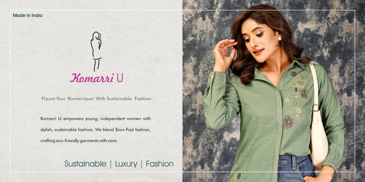 classic floral embroidered Viscose blend shirt in with cuff sleeves - Green
