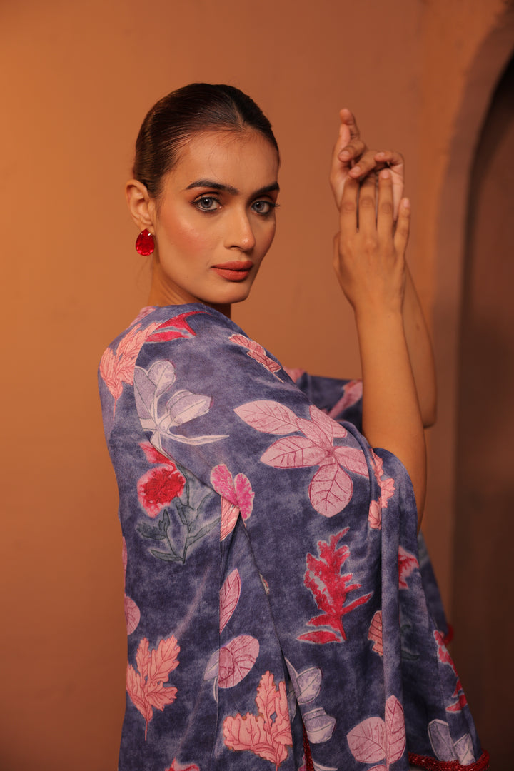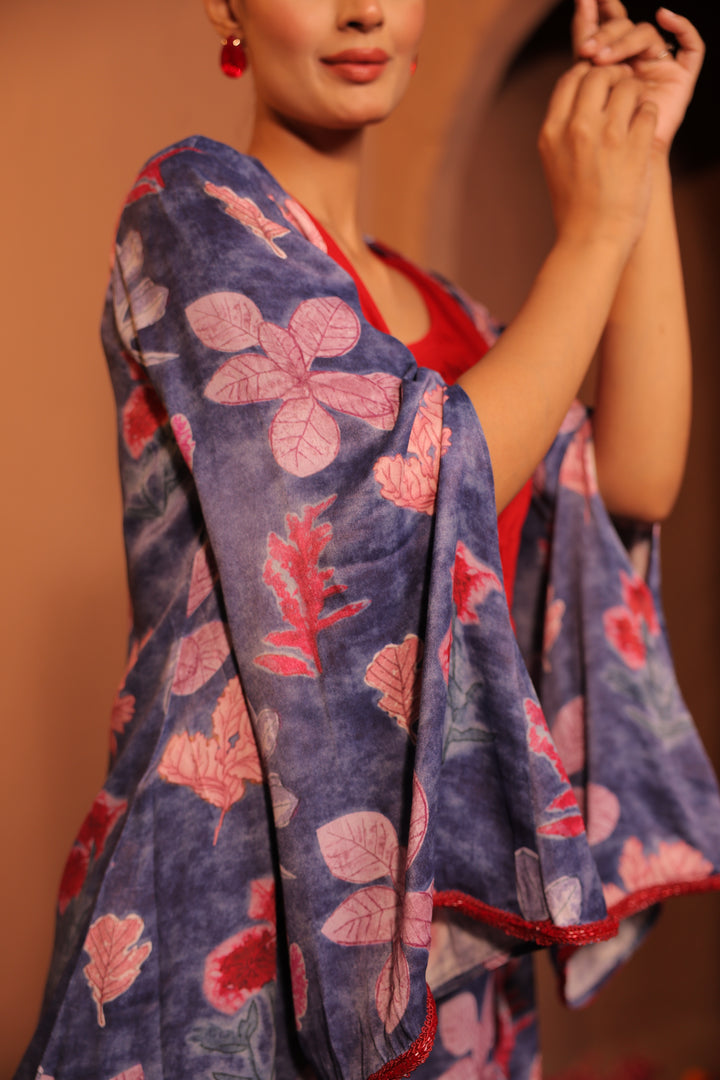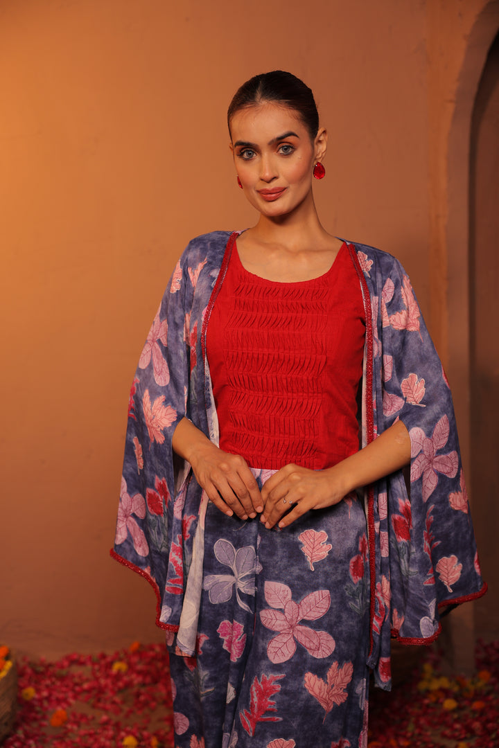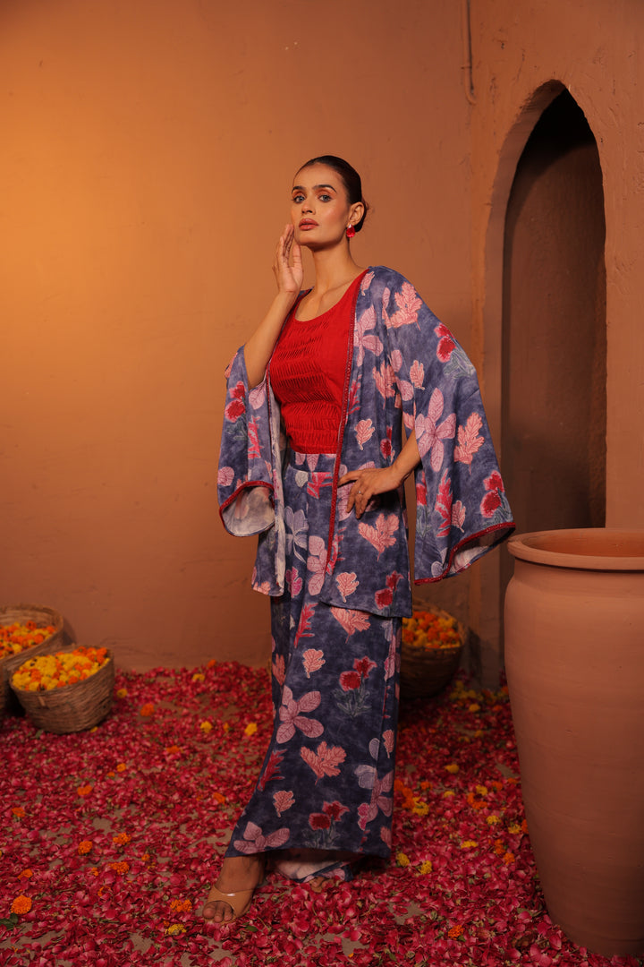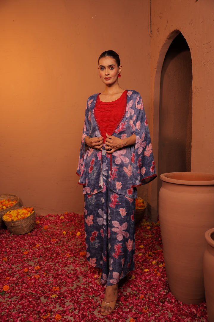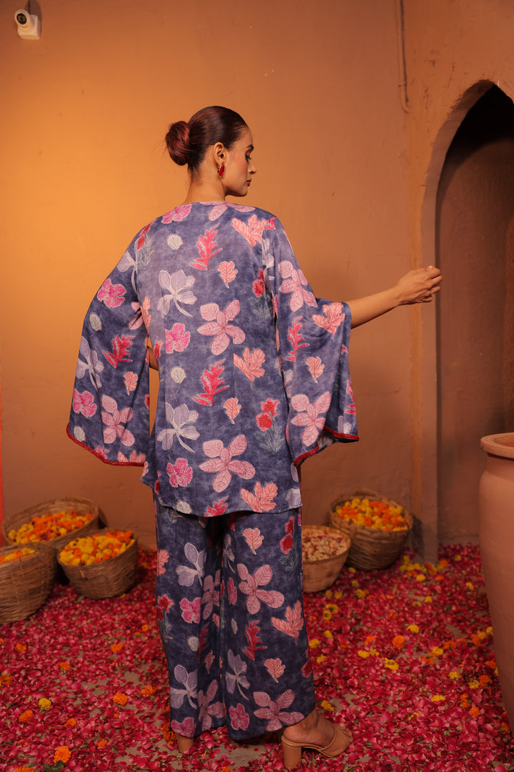 elegant asymmetric button down shirt with a flared pants set in Cotton Flex - Blue