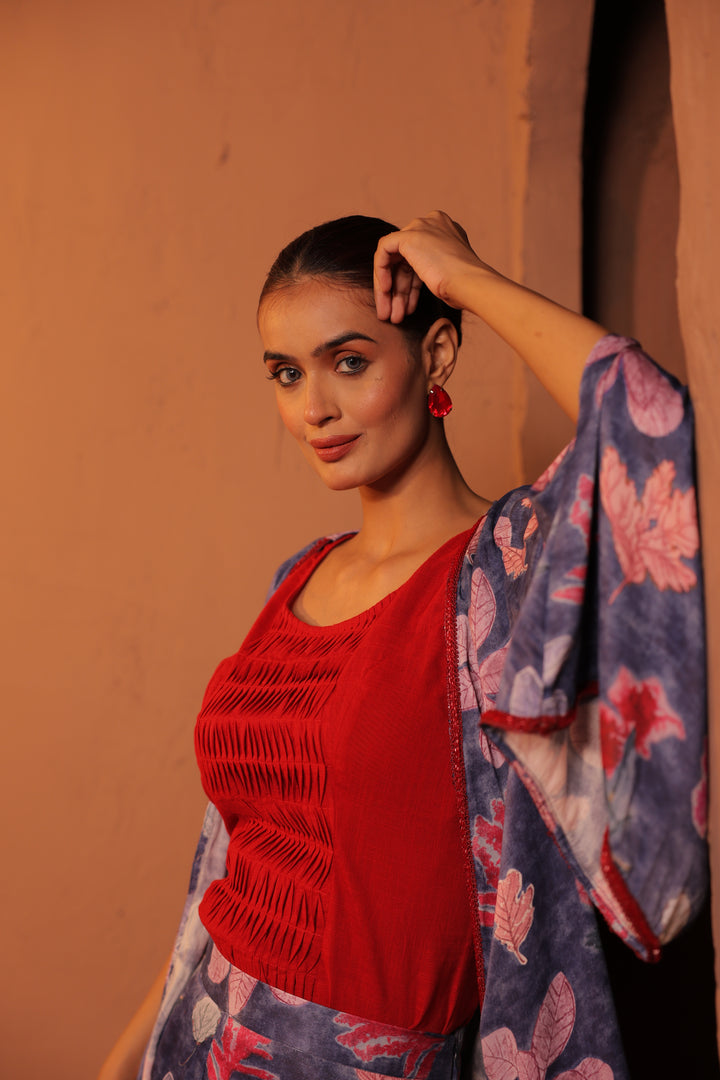 Highlights / Surface Styling / Features: Asymmetric button down shirt with flared pant