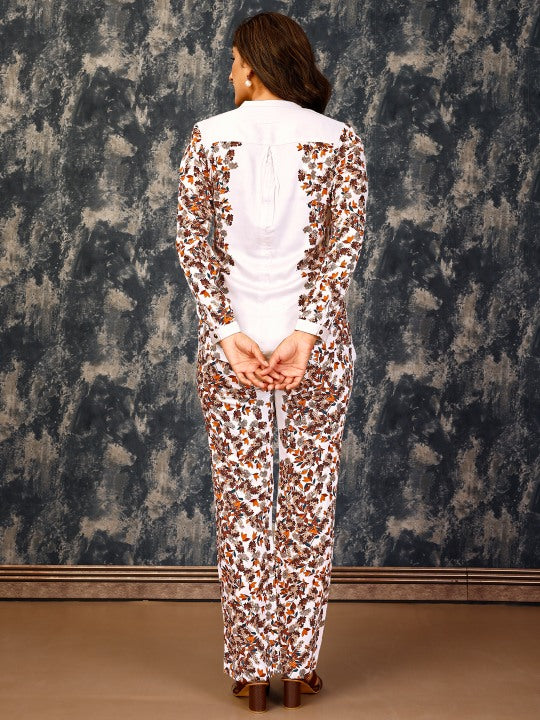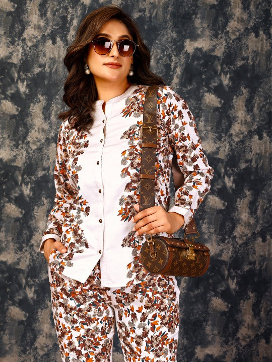 floral printed shirt with long cuff sleeves and mandarin collar and a mid-rise relaxed fit trousers set in Modal Satin - Multi
