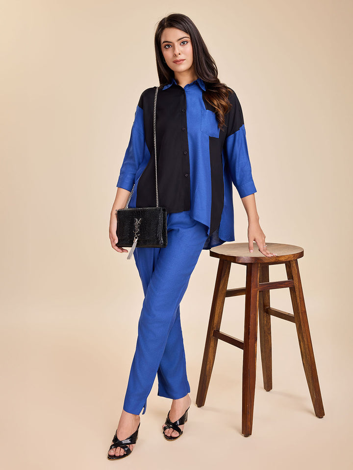 solid single breasted sleeveless waistcoat with two flap pockets at front and trousers set in cotton flex -