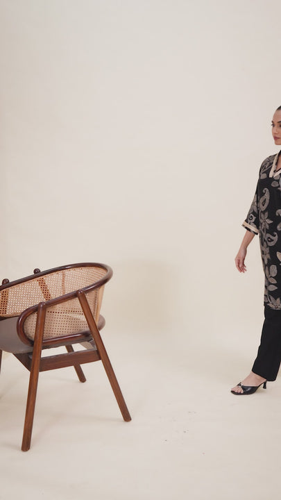 Komarri U Cotton floral print overlapped V-Neck 3/4th Sleeves lace top with easy to wear slip ons