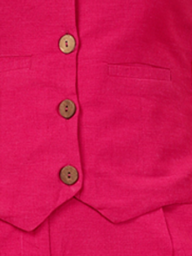 solid single breasted sleeveless waistcoat with two flap pockets at front and trousers set in cotton flex - Pink
