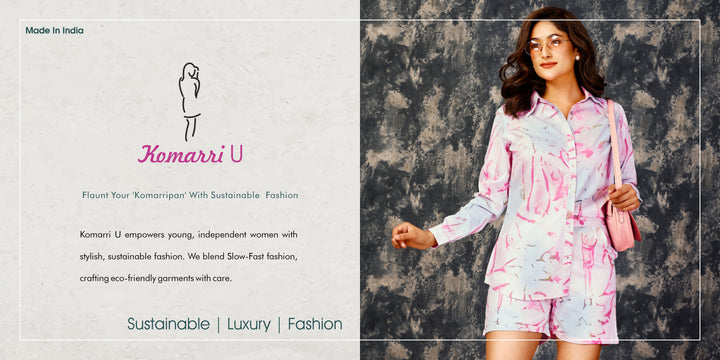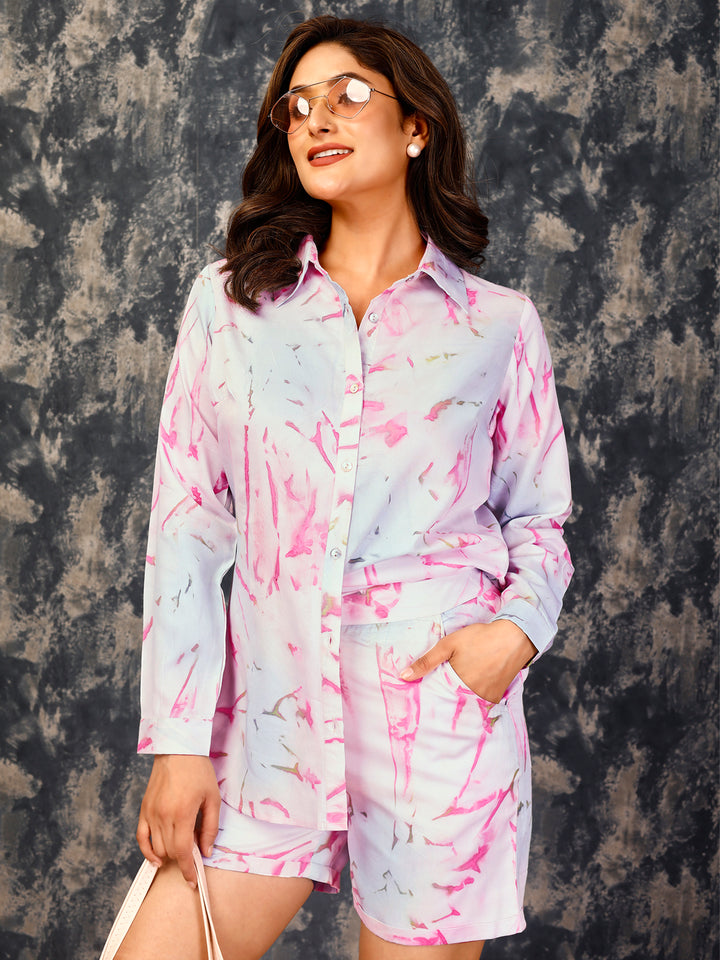 stylish long cuff sleeved shirt with a comfortable shorts set in Modal - Multi