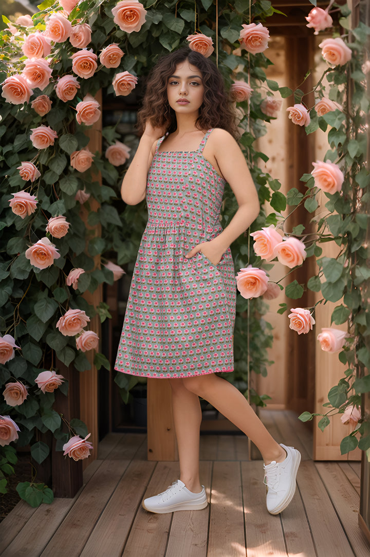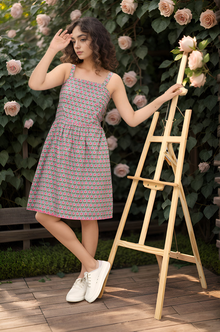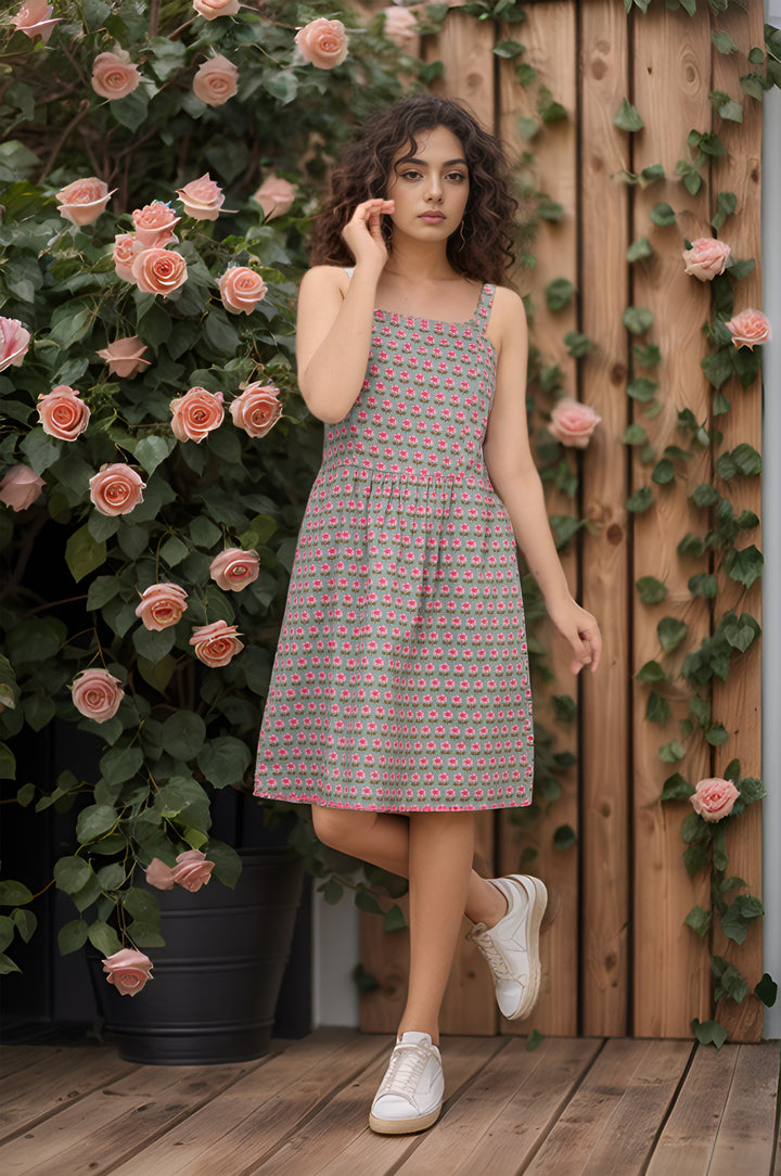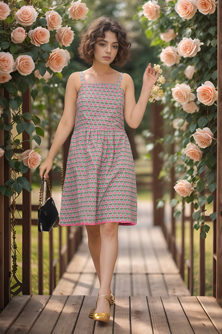 Highlights / Surface Styling / Features: modish cotton, cotton linen, tencile denim, bamboo blend,  v-neck , half sleeve, statement shell embroidered, colour blocking a-line dress.